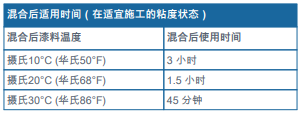 ?在涂裝施工和涂層固化過程中應(yīng)確保底材溫度高于攝氏 5°C (華氏41°F)。