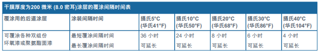 - 只要涂層表面沒有粉化和其它任何污染物,則沒有最大覆涂間隔的時間限制。