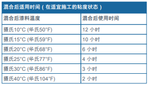 ?涂裝前最好應(yīng)將各組份或混合后的漆料溫度調(diào)控到攝氏15°C (華氏59°F)以上, 不然則可能需要添加稀釋劑,以便將漆料粘度調(diào)整到適合施工的粘稠狀態(tài)。