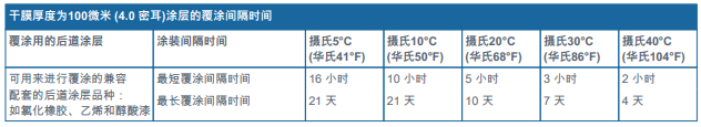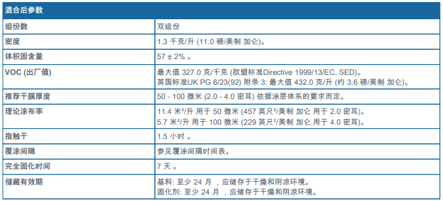 備注: 刷涂施工時的最大干膜厚度: 50 微米 (2.0 密耳) 。